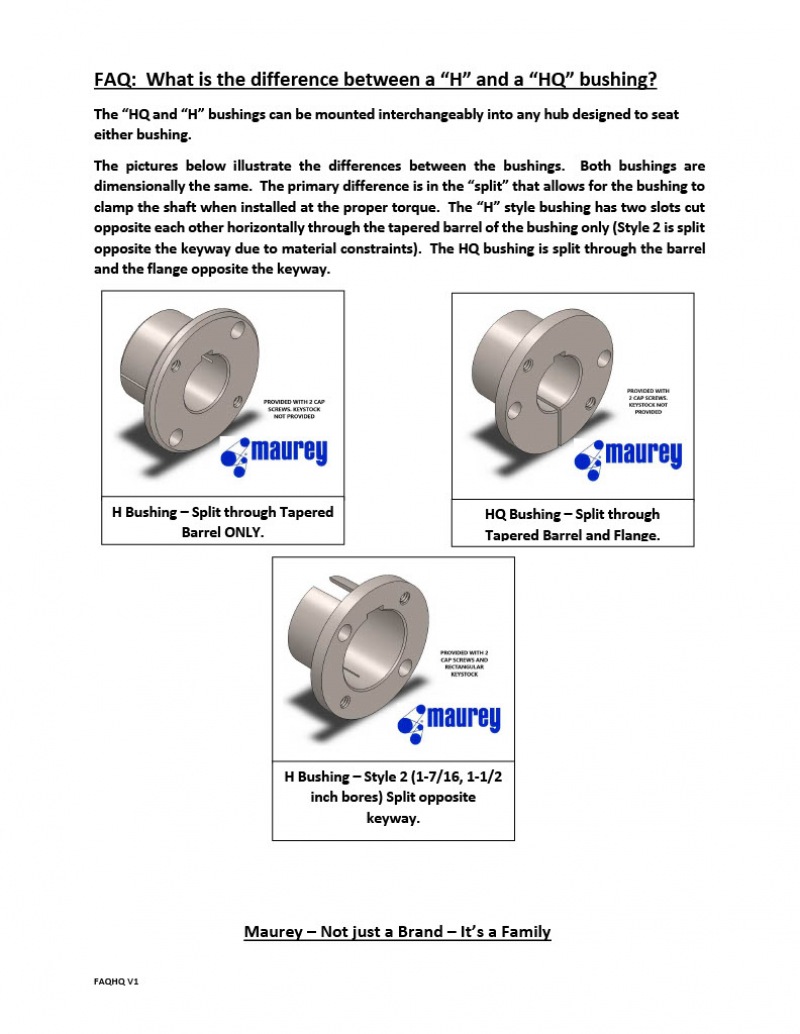 We are frequently asked if "HQ" and "H" bushings can be interchanged. They can be used interchangeably. The differences are outlined in this post.